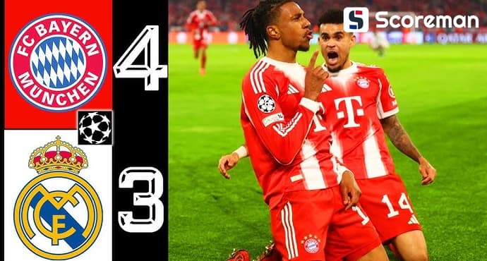 뮌헨, 레알에 4-3 난타전 승리 → UCL 준결승행…김민재 뮌헨vs이강인 PSG 코리안더비챔피언스리그 바이에른 뮌헨 레알 마드리드 바이에른 뮌헨 VS 레알 마드리드 -