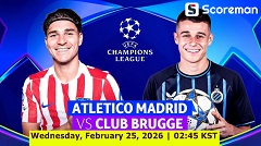 2월25일 챔피언스리그 - AT 마드리드 VS 클럽 브뤼헤 KV 해외축구 분석 프리뷰 -